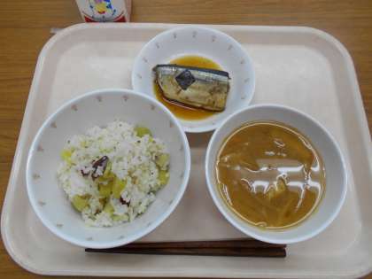 さつまいもごはん さんまのしょうが煮 大根のみそ汁 牛乳