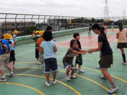 ドッジボール、鬼遊び、リレーなど、場所や人数を考えて計画しました。