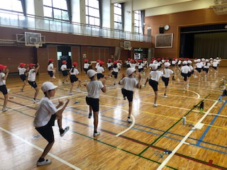 どの学年でも準備運動に取り入れていきますので、ぜひご家庭でも話題にしてください。引き続き学校ホームページではJACOT(日本コオーディネーショントレーニング協会)の動画紹介をしております。ご覧いただければ幸いです。