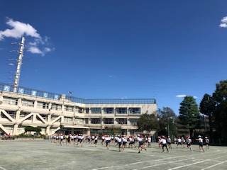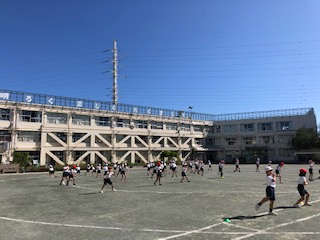 学年全体の4学級合同ではなく、2学級合同での校庭練習のようすです。
