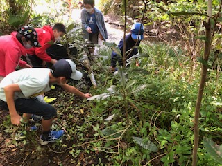 コア会議で「外来種のノハカタカラクサが里山で増えてしまって手に負えないので明正小の子の力を借りたい」とお話をうかがってから数ヶ月。1学期から調査に行ったり駆除を体験したり、いろいろな学年の子たちがとても関心を寄せています。地域の環境問題と向き合っている4年生の中には「総合的な学習の時間でぜひ駆除に取り組みたい」と言っている子たちも大勢いるようです。心強い限りです。