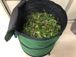 あっという間に袋は満タンになってしまっていたそうです。コンポストを見て喜び、さっそくみんなで中身を移しました。ご覧の通り、ものすごい量のノハカタカラクサが駆除できました。
