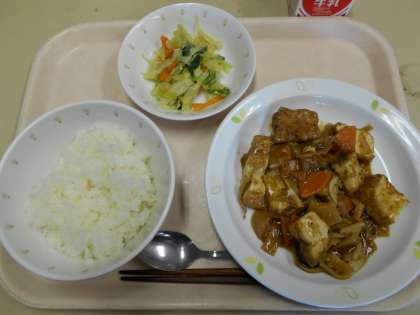 ごはん 家常豆腐 中華サラダ 牛乳