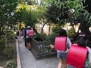 今日も下校時間帯に池の周りに子どもたちが集まっていました。入れ替わり立ち替わり多くの子が訪れています。