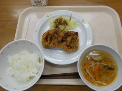 ごはん とんかつ ゆでキャベツ さわにわん 牛乳