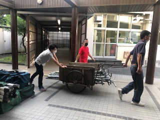 成城・砧・喜多見まちづくりセンター、東京都市大学附属中学校・高等学校からテントの骨組を借用いたしました。組み上げた後に遮光ネットを張ります。昨年度は多くの保護者の皆様に遮光ネット設営のお手伝いをいただきましてありがとうございました。今回は天候の様子を見て職員で作業を開始します。運動会が無事終了した後は、当日14時過ぎから片付けに入ります。ご都合がつく方はテント撤去にお力添えいただければ幸いです。