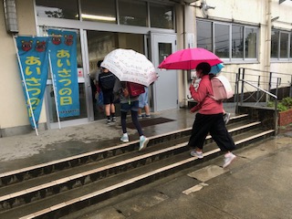 今日は10 月のおはようデーです。集団登校なしで9月から実施しています。集団登校はありませんが、6年生は登校時間帯もよく下級生の面倒を見ています。転んだ子を助けたり慰めたり、近所の子と話しながら登校したりしているようで担任はいろいろな話を聞いています。