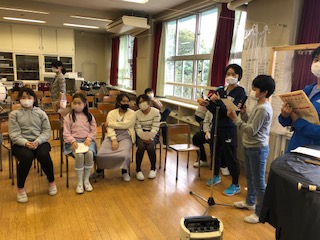 右の写真はスタート係の打ち合わせのようすです。校庭での練習はできませんが、会場図を見ながら役割のイメージを固めていました。