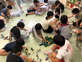 左から、レゴクラブ、バスケットボールクラブ、創作まんが絵本クラブのようすです。