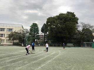 徒競走のコース整備もテント設営と同時に行いました。