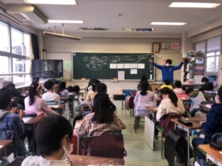 左の写真は、4年総合的な学習の時間で自分たちのゴールイメージを考え組み立てている場面です。時間はかかっても自分たちが求めていることをある程度はっきりさせてから計画を進めようと意見の交流に力が入っています。「まだ少し曖昧なところがあるので具体的にした方がいい」「途中で困ったり迷ったりしたときに”ここに戻れば大丈夫”という目標があった方がいい」など、じっくりと考えて言葉を選んで語る姿が頼もしいです。はじめから正解があるわけではないのです。現時点での「納得解」を「見える化」したいのです。3年生の時の総合的な学習の時間での主体的・対話的な学びが生きていることを感じます。