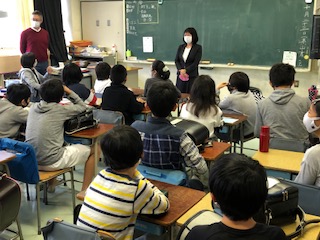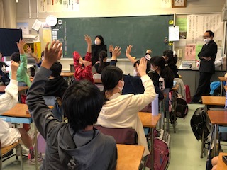 左の写真は5年、中央と右の写真は6年の教室でのようすです。