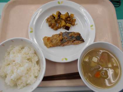 ごはん 鮭のネギみそ焼き 大豆といもの甘辛あげ ☆根菜汁 牛乳