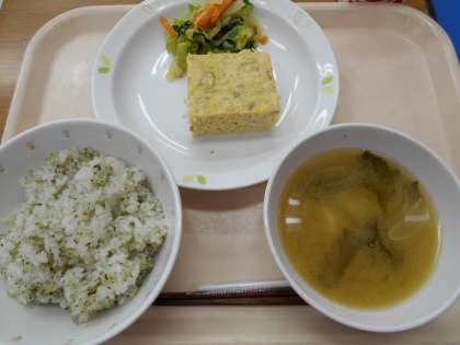 かおりごはん 切り干し大根の卵焼き 野菜のこぶ茶和え みそ汁 牛乳