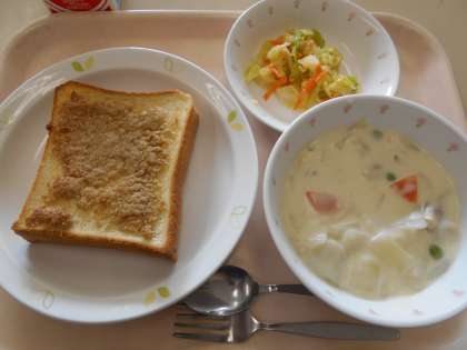 セサミトースト マカロニのクリーム煮 イタリアンサラダ 牛乳