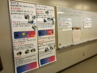 左の写真は、これまでやってみた遊びを振り返る掲示物です。自分がどれくらい楽しかったかをシールで貼って表現しています。楽しさの可視化(見える化)をしています。