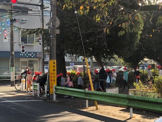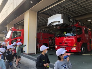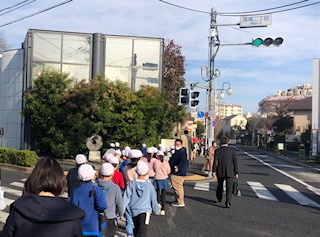 写真は、2年生活科「まちがだいすき まちたんけん」の学習のようすです。成城消防署から成城学園前駅方面を目指して校外学習に出かけました。今回は2クラスずつ時間をずらして一緒に歩く「ぞろぞろ探検」でした。今後どのように学習が展開していくかは、子どもたちの思いや願いを引き出しながら計画していくことになります。明正小は、駅で言うと喜多見・成城学園前・祖師谷大蔵まで広がる学区域をもつ学校です。隈なく探検すると言うよりは子どもたちの関心をもとに町の人たちと交流し、町と地域の人たちへの愛着が増すような学習を展開したいと願っています。コロナ禍を踏まえて実現可能な探検の仕方、かかわり方を検討します。地域の皆様にご相談しながら学習を計画してまいります。