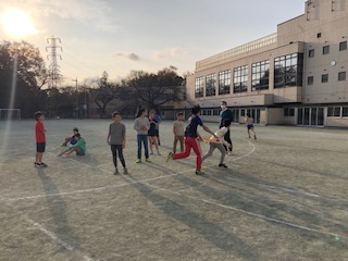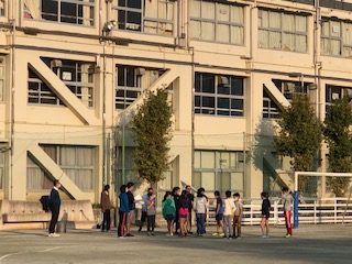 写真は、5・6年有志による世田谷子ども駅伝に向けた朝の練習会のようすです。今朝は教員も加わって3チームを編成し、200mエンドレスリレーに取り組みました。走る姿に迫力が増してきました。登校してきた子どもたちも大いに注目しています。