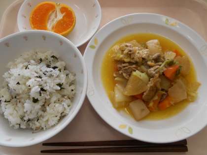 わかめとじゃこのごはん 豚肉と大根のうま煮 早香 牛乳