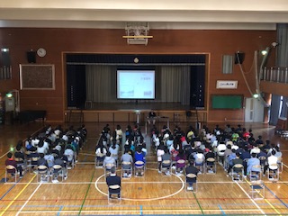 左の写真は、6年「原爆先生の特別授業」のようすです。特定非営利活動法人原爆先生から理事長においでいただき、戦争や原爆の惨状を知ることで命の大切さや死傷の悼みを自分自身で考える機会となりました。