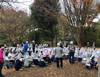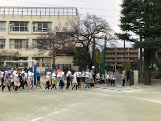 出火により校庭でなく二次避難場所である里山の鉄塔広場に避難する必要があるという設定で避難訓練を実施しました。