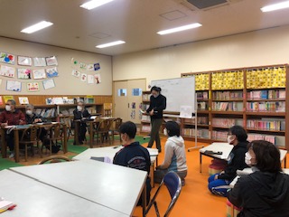 右の写真は、児童の下校後に絵本室で開催された里山コア会議のようすです。12月17日(木)に予定している「里山 落ち葉かき」の打ち合わせのために3年の担任が参加しました。