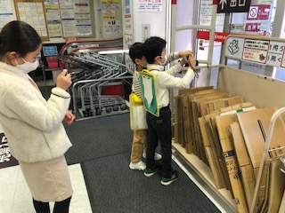 中央と右の写真は、成城OKに見学に出かけたグループの活動のようすです。リサイクルの取組を取材しているグループや、商品に使われているプラスチック包装の実際を見学しているグループなど、それぞれが自分たちの視点をしっかりもっているので、活動に力強さがあります。本気で取り組む子は、まさに「主体的」です。営業時間中にも関わらず見学を受け入れていただきご対応くださり、感謝申し上げます。