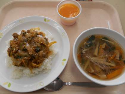 豚キムチ丼 春雨スープ キャロットゼリー 牛乳
