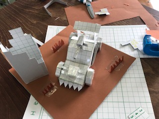 レゴクラブもペーパークラフトクラブも作品作りに集中しています。ペーパークラフトクラブは、車を作る人、家を作る人などで分かれて取り組み、ゆくゆくは全体で町づくりを目指しているそうです。