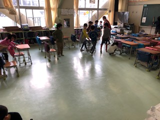 顔がうつるくらいピカピカの教室を誇らしげに見せてくれました。