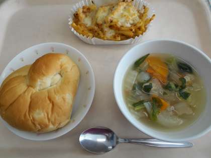 パインパン ポテトミートグラタン ベーコンと白菜のスープ 牛乳