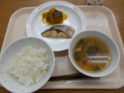 ごはん ぶりのゆうあん焼き かぼちゃの含め煮 さわにわん 牛乳