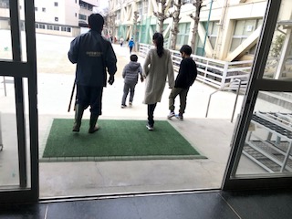 右の写真は、用務主事さんに見ていただこうとお誘いしている場面です。