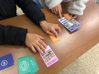 ゲームは、2021年から2023年の3年間を前半7分で進行しています。プロジェクトを達成したグループは、ファシリテーターからそのプロジェクトに見合う時間やお金のカードと次のプロジェクトカードと「意思カード」がもらえます。ここで言う意思とは「やりがい」「情熱」などの無形のものです。意思カードがあるのは、現実社会と同じでお金や時間よりもやりがいを大切にしている人がいる、やりがいを人生の目標にしている人がいるからだそうです。