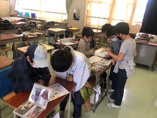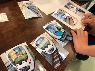 写真は、鉄道クラブの活動のようすです。来年度の入部に向けて3年生が続々と見学に訪れています。手作りの切符を手渡したり、自分で撮影した鉄道写真を説明したりと、手厚いおもてなしに感心しました。