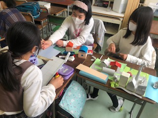 写真は左から、ペーパークラフトクラブ、創作まんが絵本クラブ、バドミントンクラブの活動のようすです。