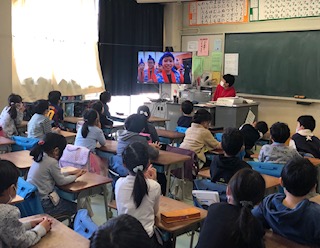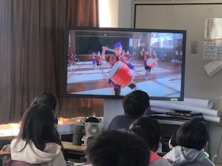 どの学年の学級でも、みんな引き込まれるように見入っていました。日ごろ一緒に学校生活を送っている仲間や上級生が、迫力ある演舞を披露するその真剣な姿が、画面を通じてグッと胸に迫ってきました。感動しました。約15分間の動画の終了時には大きな拍手が廊下まで響いてきました。