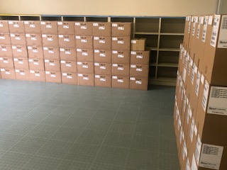 学習用タブレット端末が、今日明正小に534台到着しました。既に1人1台配布済みの6年生に続き、5年生から2年生に1人1台配布することになります。子どもたちへの配布にあたっては、iPadとキーボード付きカバーをセットで渡すことになります。現在は施錠できる部屋に保管しています。配布時期は2月中を目途としています。