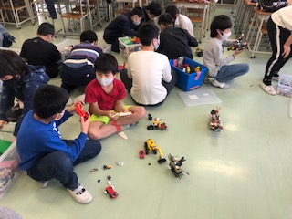 中央の写真は、レゴクラブの活動のようすです。今回も各自夢中になって作品を制作しています。