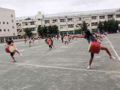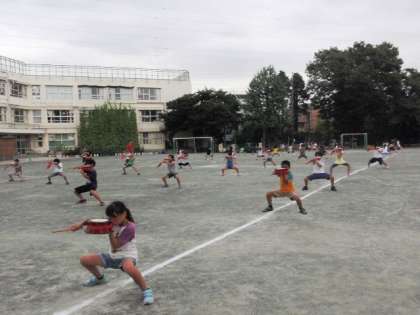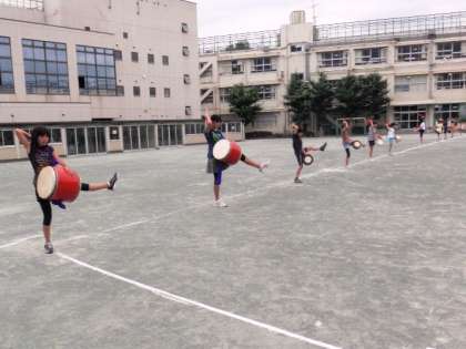 新宿エイサーは来週の土曜日です。今日は校庭で練習をしました。体育館から外へ出てくると位置取りを決めるのが大変です。でも、これを確実にしておかないと本番でうまくいきません。練習を兼ねるほどに子どもたちの顔つきが変わってきました。水泳帰りの子どもたちも立ち止まっていました。新宿だけでなく、喜多見のお祭りでも踊ります。皆さんぜひ応援してくださいね。当日の様子もお知らせします。