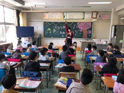 1年生の小学校生活がスタートしました。配布物を配る時のきまりや荷物をかける廊下のフックの場所を確認しました。さすが幼稚園や保育園でリーダーとして活躍していた子どもたちです。初めてのことばかりですが、一つ一つのことに真剣に取り組んで身に付けていました。また一緒に生活する仲間について分かり合っていくための時間も大切にしています。1年1組では自分の名前を呼ばれたら手を挙げて返事をし、「好きな物(こと)」を発表していました。明日以降も、ゆっくりとそして確実に小学校生活に慣れていくことができるよう励ましていきます。