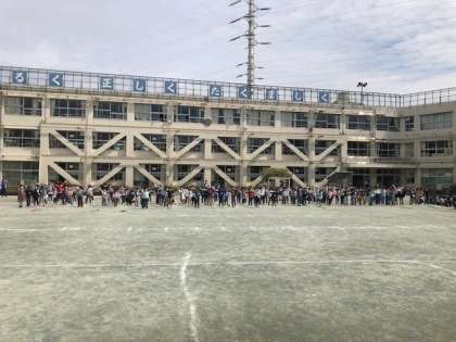 プログラム2番「1年生へのプレゼント」では、2年生が1年生の時に育てたアサガオからとれた種が2年生代表児童から1年生に手渡されました。2年生が熱心にお世話をして育てたその思いがつまった種を、1年生が引き継ぎました。プログラム3番「1年生から」では上級生に向けてお礼の出し物が披露されました。「ドキドキドン!1年生」の歌に合わせた振り付けを体いっぱいに表現にしました。最後は、2〜6年生全児童で「拍手のウエーブ」を1年生に贈りました。6年生から拍手をスタートし、4年ー2年ー3年ー5年ーひまわりの順に拍手を重ねていき、どんどん拍手の音が重なり大きくなっていきました。短い時間でしたが、2年生以上の歓迎の気持ちがたくさんこめられた「1年生を迎える会」になりました。