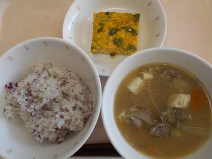 ゆかりごはん 卵焼き 豚汁 牛乳