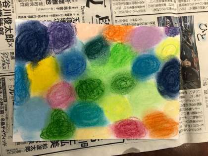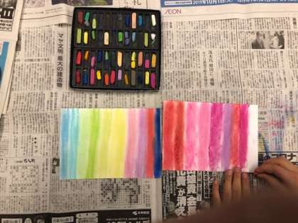 2時間目、5−1は図工の時間でした。今日のめあては「パステルの使い方を知る」です。パステルの使い方の1つ、何色かの色を塗った部分を指でこすることによってグラデーションを生み出す使い方に夢中になって取り組んでいました。これらの技法を学んだ子どもたちが今後取り組む作品は「抽象画」です。今日は抽象画とは何かということも学びました。見る人によって様々なとらえ方ができる抽象画のおもしろさを存分に味わってほしいと思います。