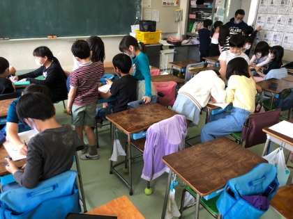 5時間目3年3組では学級活動が行われていました。新しいクラスがスタートして3週間がたちました。みんなでクラスにとって必要で、その係があることによってクラスが楽しくなったり、過ごしやすくなったりするものをみんなで考えて作った係活動。でも3週間たって、係によっては、まだ活動が思うように進んでない係もあるようでした。時間をとってもう一度、係を作った理由や、その係でやりたいと思ったことに立ち返りました。活動に入ると、ポスター作りや活動計画づくりなどに意欲的に取り組んでいました。何事も一度立ち止まってあらためて自分の取組を振り返る機会は大切だと感じました。
