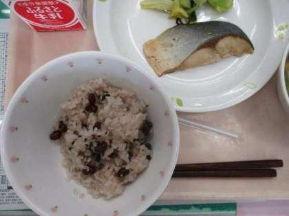 休み時間には、数名の子が校長室に記念誌を見に来てくれました。また、今日の給食は、お祝いの赤飯でした。