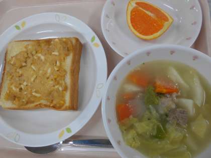 ツナトースト ポトフ 清見オレンジ 牛乳