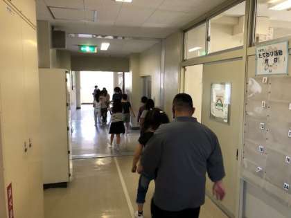 休み時間終了後の職員室の前を、体育館遊びから教室に戻る3年生の姿がありました。みんな静かに廊下の右側を歩いています。立派な姿でした。児童、教職員合わせて900名以上が一緒に生活している学校で、みんなが安心、安全に生活するためには、一人一人がこのようにマナーやルールを守ることが大切ですね。