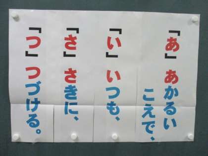 他にも、挨拶は相手にいい印象を与えたり、相手のことを大切にしたりすることができます。いい挨拶ができるようにポイントを話しますので、やってみてください。「あ」明るい声で。「い」いつも。「さ」先に。「つ」続ける。
