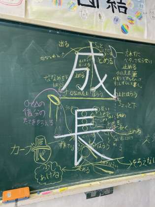 5年生の2回目の書写は「成長」でした。子どもたちで気をつけるべきポイントを考えて、確認しながら書きました。おたがいに上手なポイントを伝えあい、高めあっている様子でした。